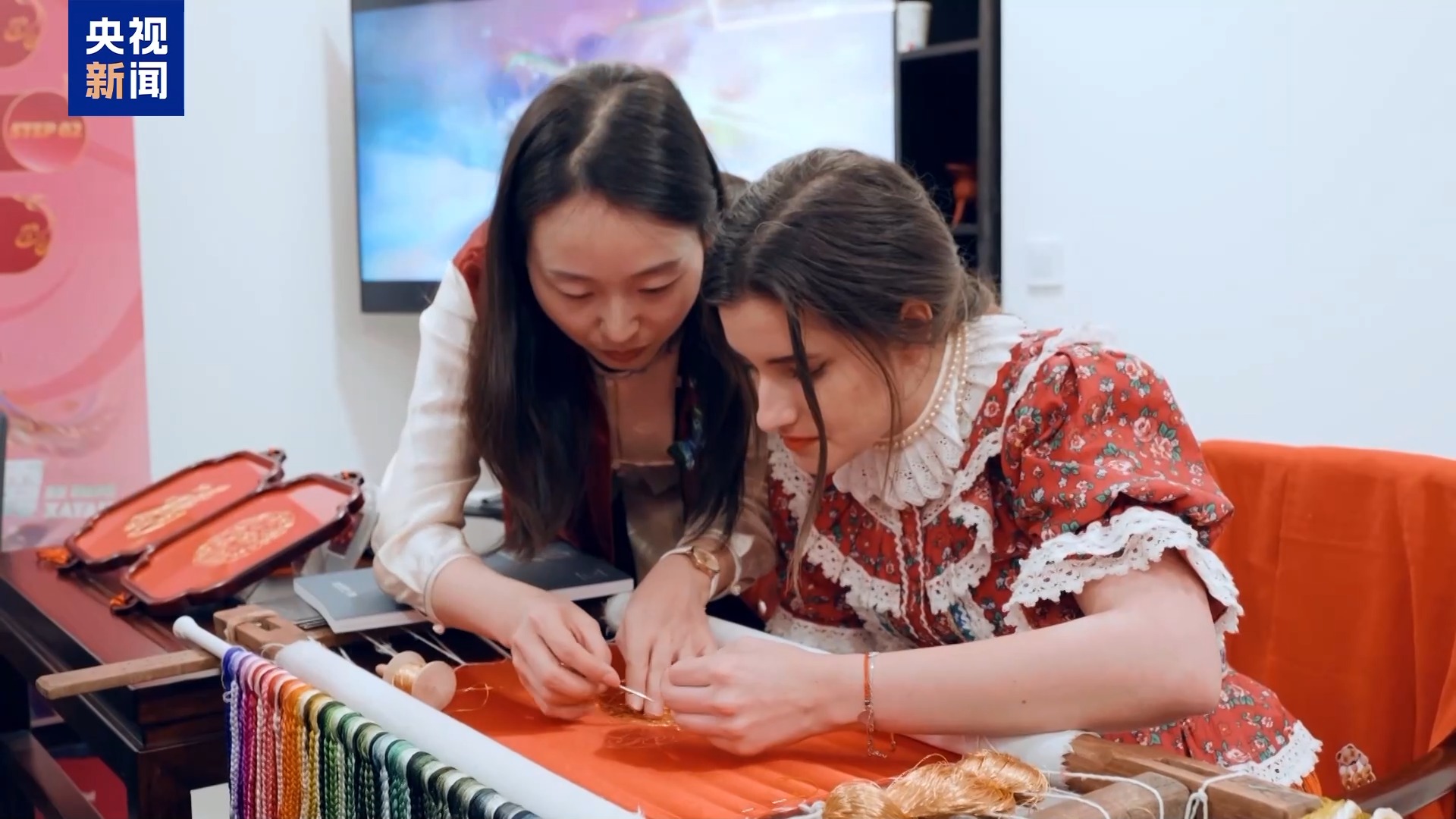 除此之外,苏绣和匈牙利刺绣艺术体验活动、在茶艺教室举办的“汴京灯笼张彩灯制作”和“汴京风筝制作”非遗小课堂也场场爆满。